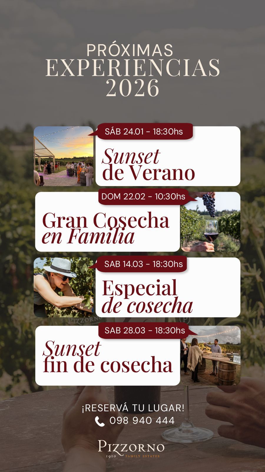 • Dirección: Bodega Pizzorno, Ruta 32, Km. 23 - Canelón Chico